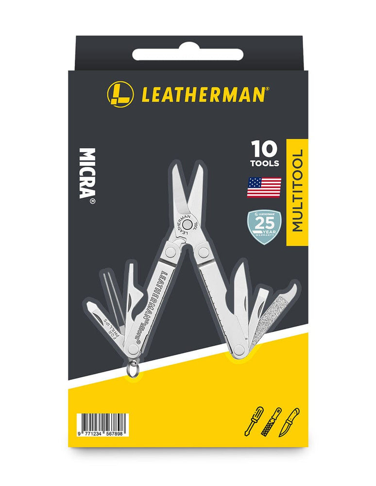 La Leatherman Micra es nuestra miniherramienta más popular entre pescadores, aficionados y aquellos que saben apreciar las mejores tijeras de resorte que existen. Las funciones de cuidado personal que caben en su llavero son sólo una parte de lo que hace que el Micra sea verdaderamente único. Esta pequeña y ligera Leatherman contiene diez herramientas útiles. Máxima calidad con 25 años de garantía.