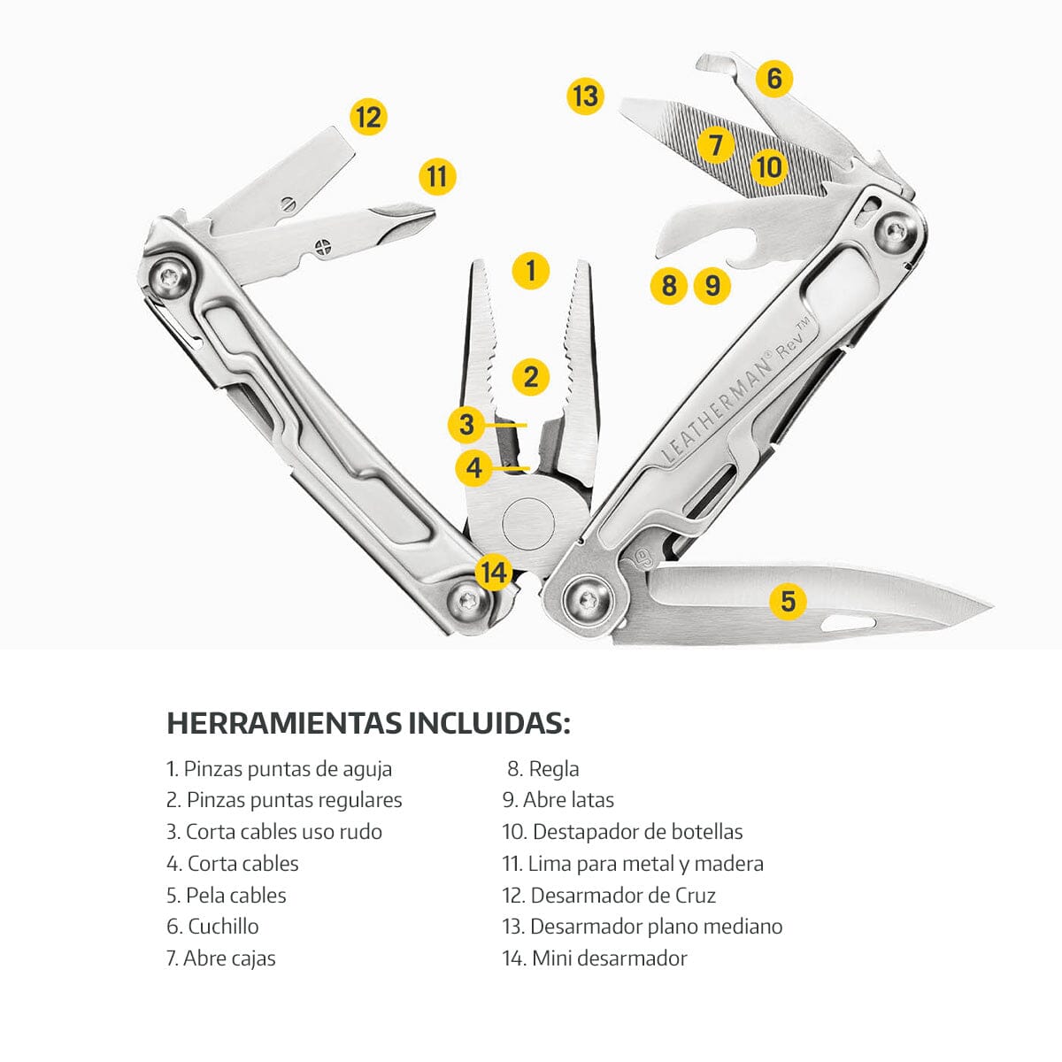 Esta multiherramienta te permite tomar una caja de herramientas llena de funcionalidades y tenerla a tu alcance, sin importar dónde estés. La Rev cuenta con 14 herramientas indispensables, una hoja 420HC accesible desde el exterior y un clip de bolsillo reemplazable para facilitar su transporte y, como siempre, está respaldado por la garantía Leatherman de 25 años. Incluye funda.