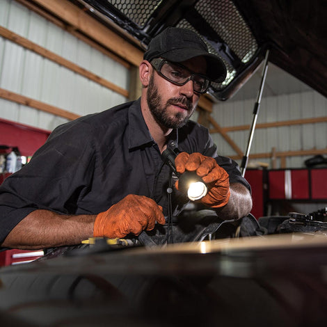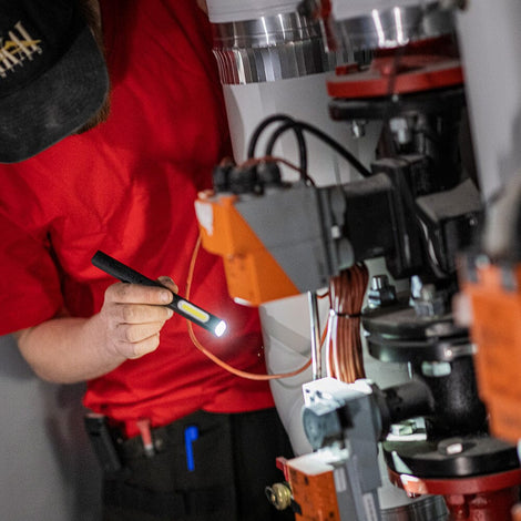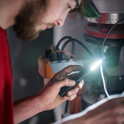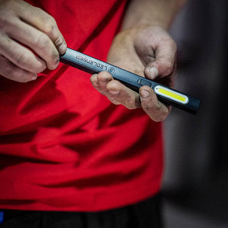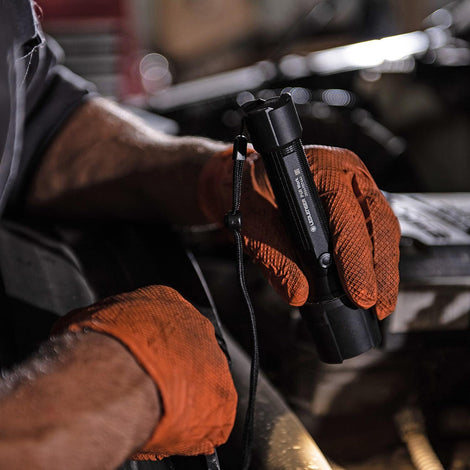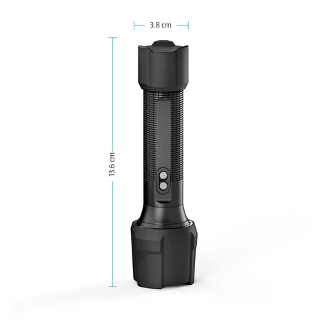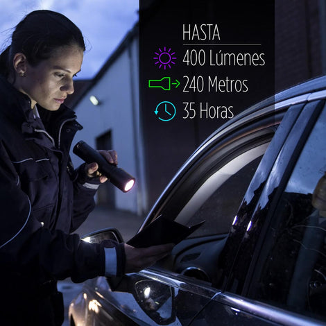 | Aplicación | Esta práctica linterna es intuitiva para usar y sus características la hacen ligera. Está preparada para tus trabajos industriales más demandantes gracias a sus 3 niveles de brillo y su luz roja. La rueda inferior hace que puedas nivelar la intensidad de la luz. | |