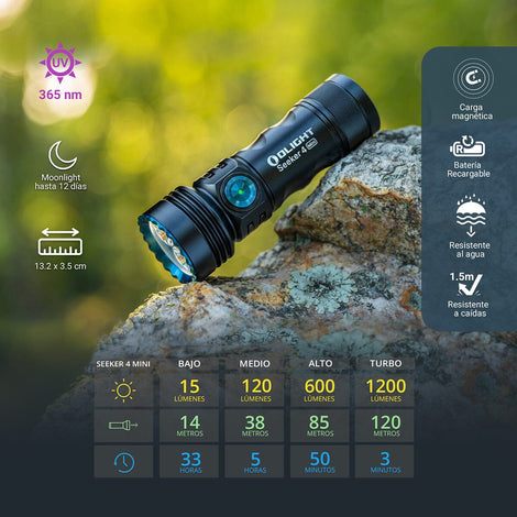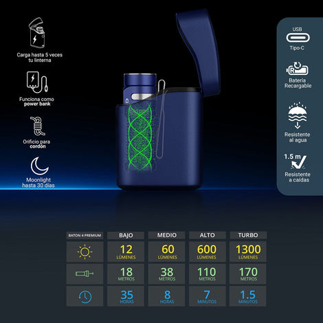 | • Diseñada pensando en la seguridad del usuario: Incluye una función de bloqueo y el modo Half-Turbo para que la luz sea segura en el bolsillo. | ||