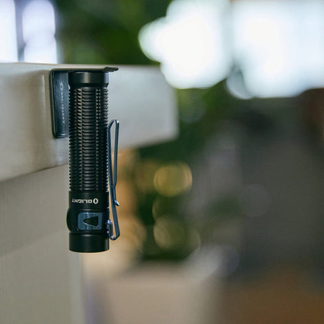 | • Se adapta cómodamente al bolsillo: El clip de bolsillo bidireccional de acero inoxidable permite llevar la linterna con el bisel hacia abajo o hacia arriba. | ||