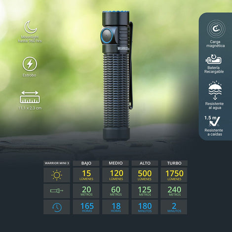 La Warrior Nano ofrece una impresionante potencia de 1200 lúmenes y un alcance de 135 metros, todo ello en un tamaño compacto de 8.1 centímetros. La opción táctica más potente que más a encontrar en una linterna de bolsillo. Especificaciones: Marca OLIGHT No. de Modelo Warrior Nano Color Negro Medidas 2.3 x 2.3 x 8.1 cm Peso 85 gr...