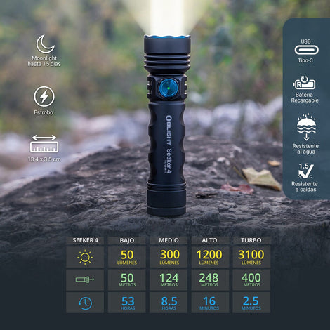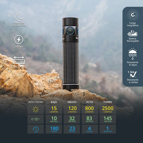 | • Desbloquea un sinfín de posibilidades de iluminación: Cuenta con seis niveles de brillo (Turbo, Half-Turbo, High, Medium, Low y Moonlight) y dos modos tácticos (Strobe y Momentary-on). | ||