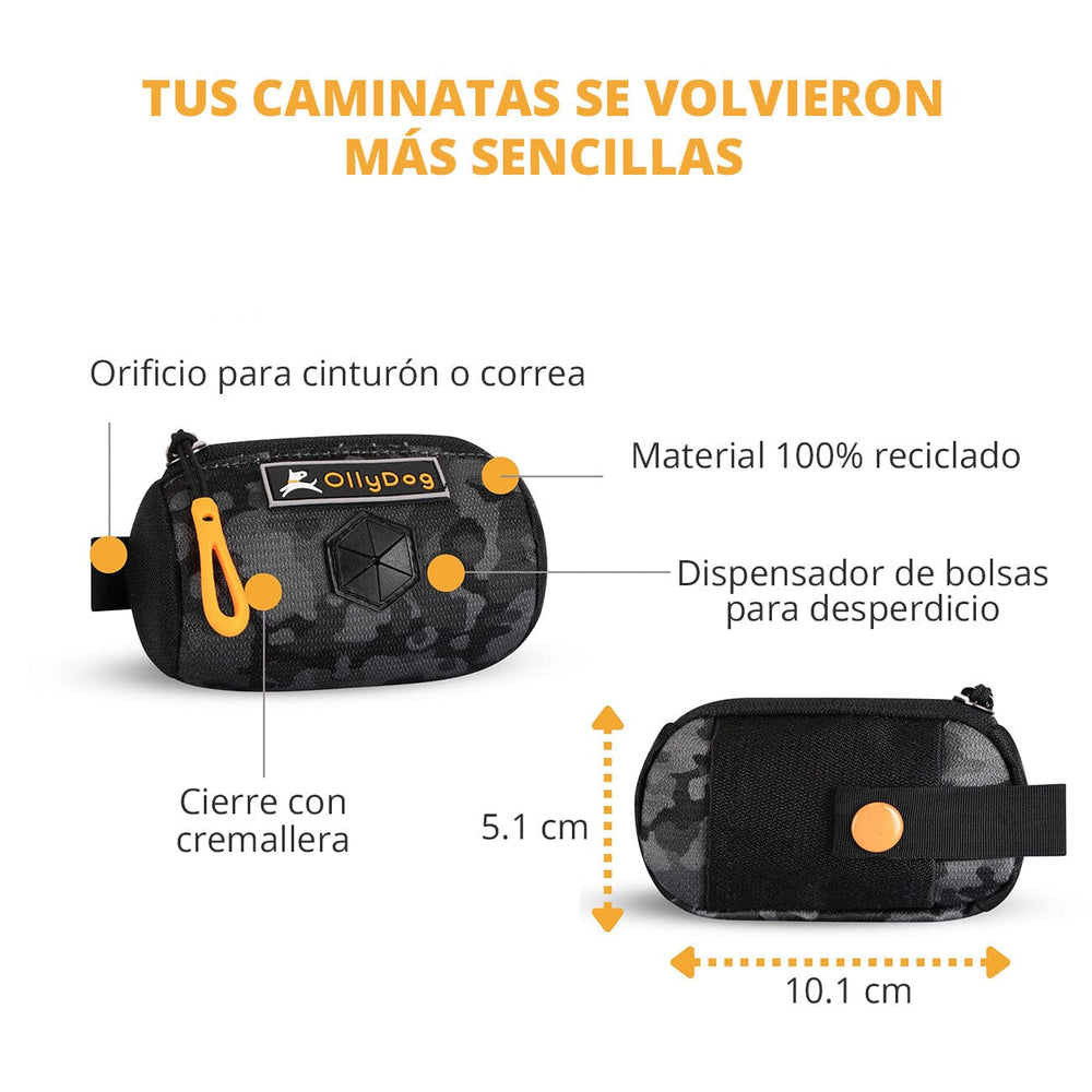 Especificaciones: Marca OLLYDOG Modelo SCOOP PICKUP DREAM CAMO OS Medidas 10.2 x 3.8 x 5.1 cm Material Nylon reciclado Color Negro Aplicaciones • Desliza la Scoop Pick Up Bag en la correa de tu perro o engánchala a tu cinturón para acceder fácilmente cuando estés en movimiento y Tu perro tenga que ir al baño. Ventajas • Fabricada 100% de...
