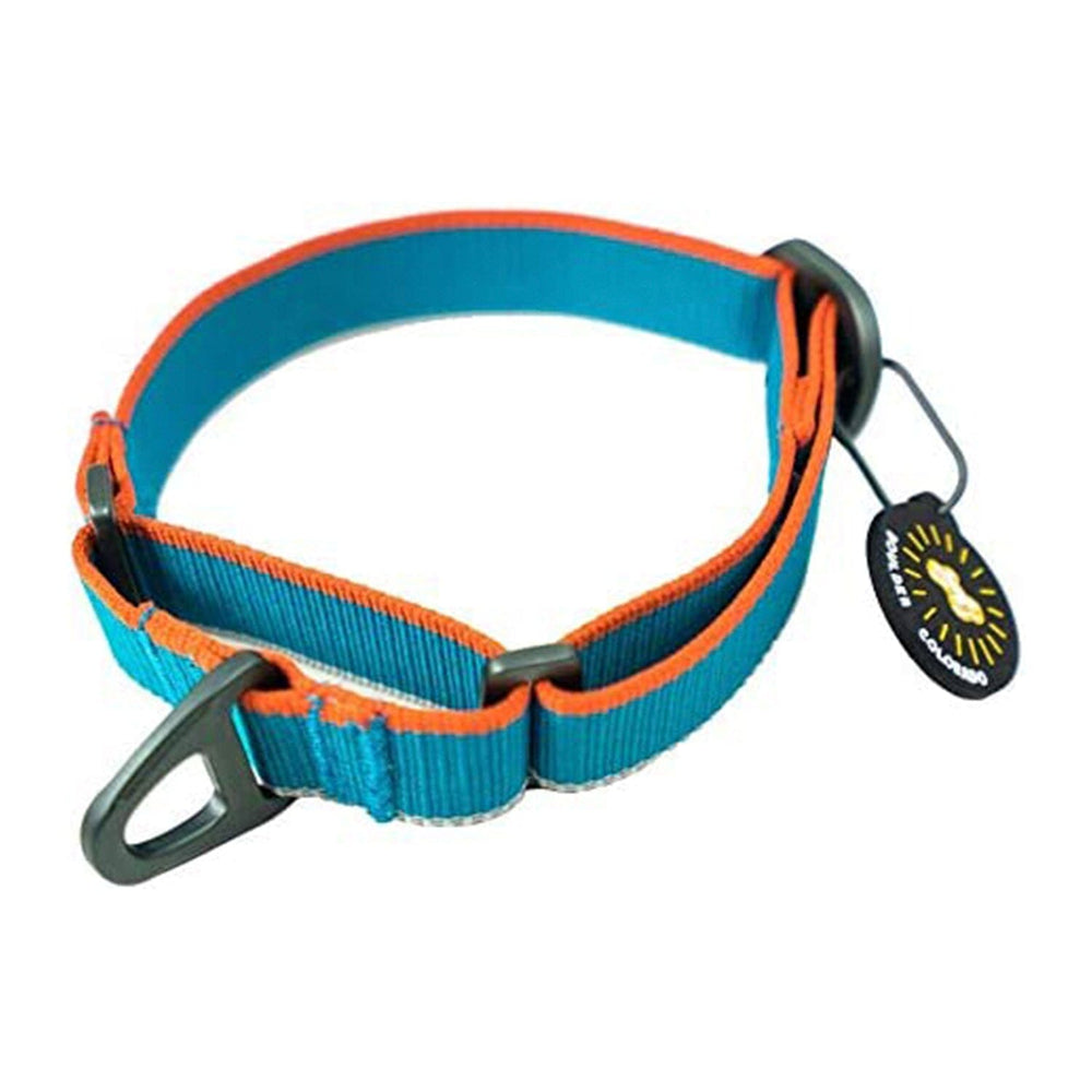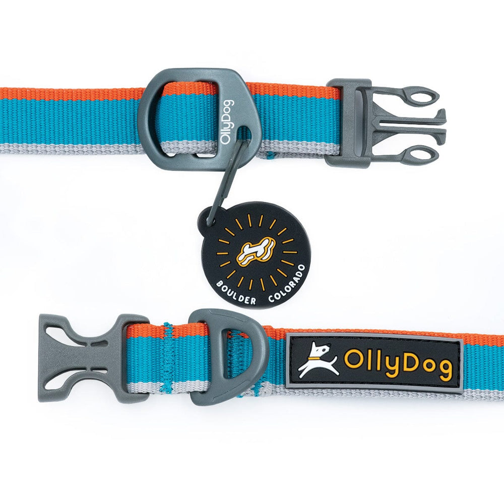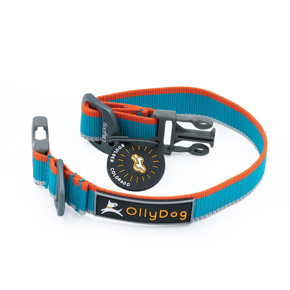 Especificaciones:   Marca OLLYDOG No. de Modelo AIR BLUE Largo Chico: 28.5 cm - 36.5 cm Mediano: 40.1 cm - 58.5 cm Grande: 46.1 cm - 66.1 cm Material Nylon creado a partir de material reciclado Color Azul con naranja Aplicaciones • Combinando durabilidad y comodidad, y hecho a partir de materiales reciclados, este collar te permite dar un peso a...