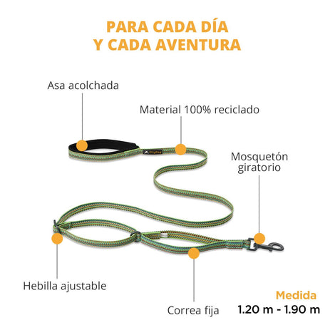 Aplicaciones | • Con un diseño novedoso y hecho a partir de materiales reciclados, esta correa te permite dar un paseo con tu perro mientras proteges el medio ambiente. |